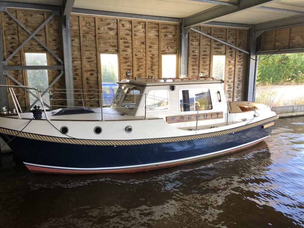 Hier ligt de Kornuit met al haar teak delen glanzend. De komende tijd kan de Owatrol goed intrekken.