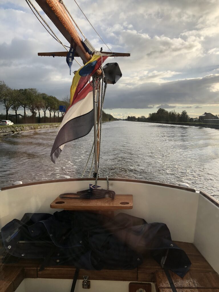 Als de mast omhoog staat varen we de giek ook in de mik.