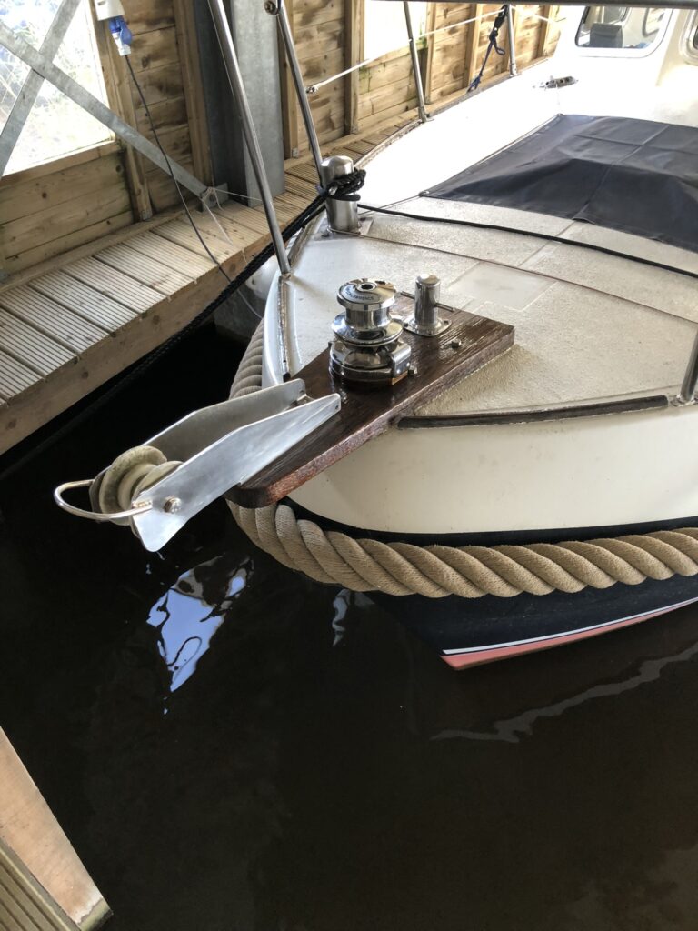 Het anker varen we gebruiksklaar. Hier zie je de ankerplaat met winch en bolder.